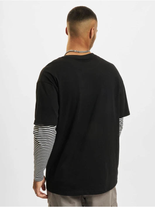 Herren Longsleeve Oversized Double Layer Striped Tall in schwarz